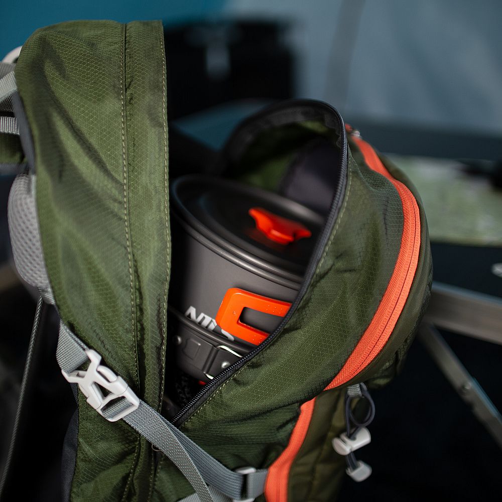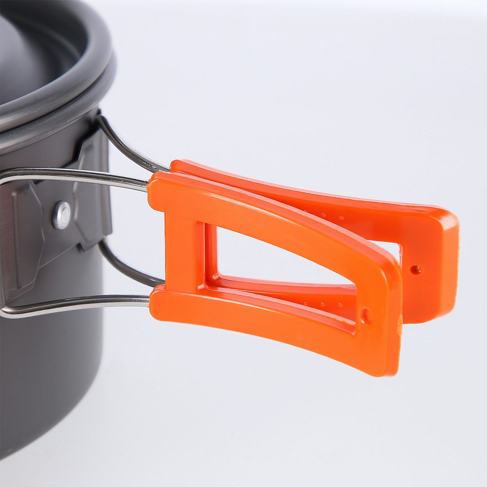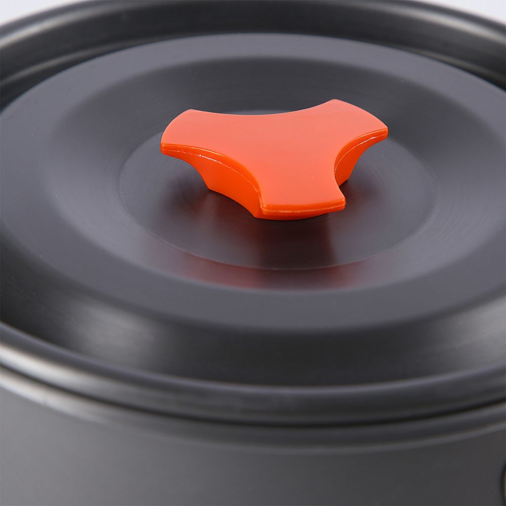 Nádobí je vyrobeno z robustního hliníku s povrchovou úpravou, na které se potraviny nepřichytávají. Celá sada je velmi odolná a lehká, hrnec, pánev i konvice jsou navrženy tak, aby do sebe snadno zapadly, což ještě více usnadňuje jejich balení a přepravu. Ideální pro ty, kteří si chtějí vychutnat požitek z vaření v přírodě bez kompromisů. Kromě toho má hrnec a pánev sklopnou rukojeť potaženou izolační vrstvou, která zabraňuje náhodnému popálení při odkládání nádobí z hořáku. Dodává se také s praktickým přenosným pouzdrem a karabinou, která umožňuje zavěsit nádobí k rychlému usušení.