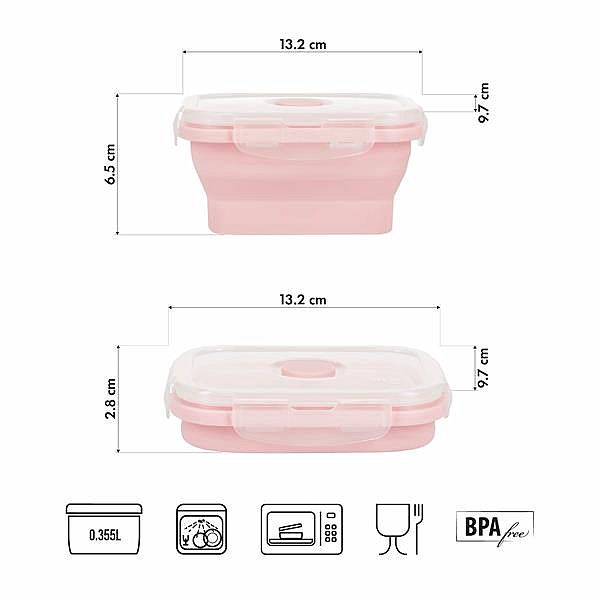 Popis: Skládací svačinový box NILS Camp NC4105 355ml růžový