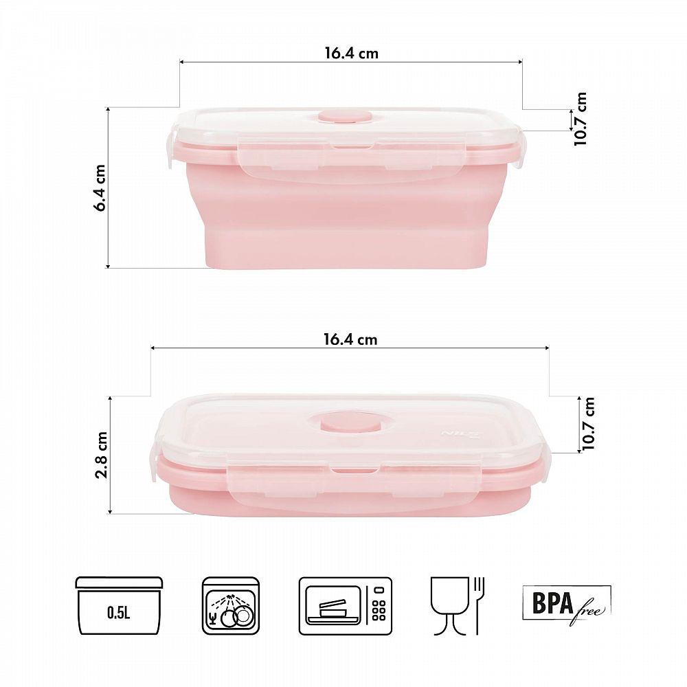 Popis: Skládací svačinový box NILS Camp NC4105 500ml růžový