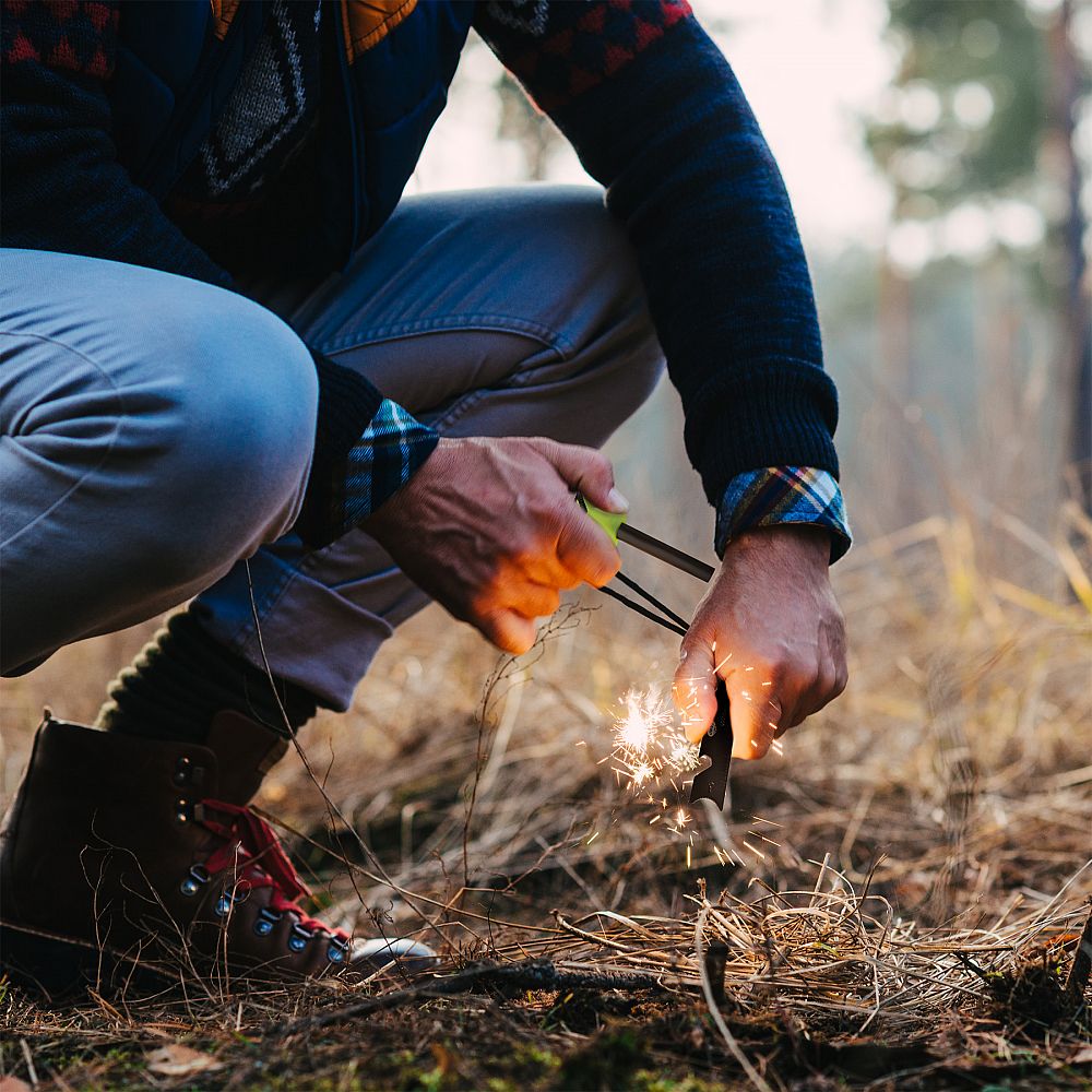 Zapálení ohně pomocí křesadla NC1794 je velmi jednoduché. Stačí trocha troudu, do něj naškrábeme pár hoblin a následně škrtneme, aby vznikly silné jiskry schopné rychle zapálit oheň. V případě použití opravdu suchého troudu není potřeba škrábat hobliny z křesadla a stačí rovnou škrtnout. Díky intuitivnímu použití zvládne práci s křesadlem i začátečník.