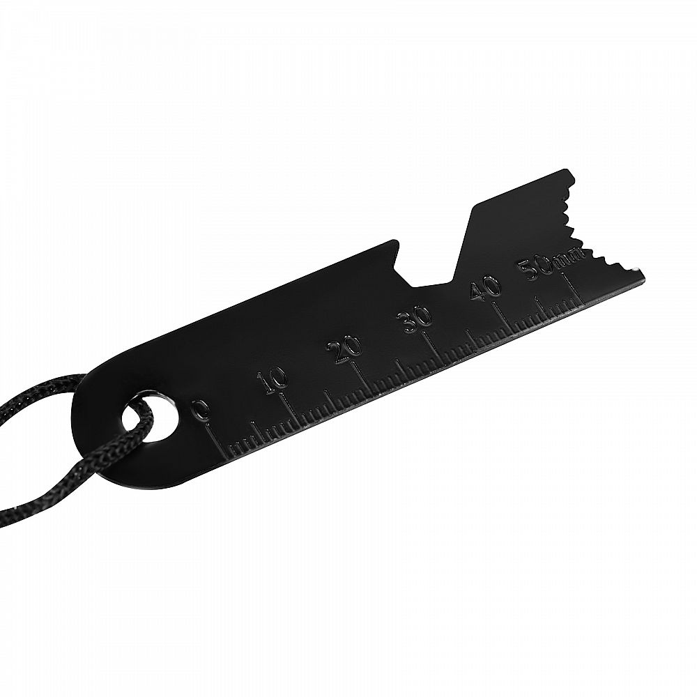 - Ocelová multifunkční destička vybavený otvírákem na lahve, měřidlem, škrabkou a mapovou stupnicí.