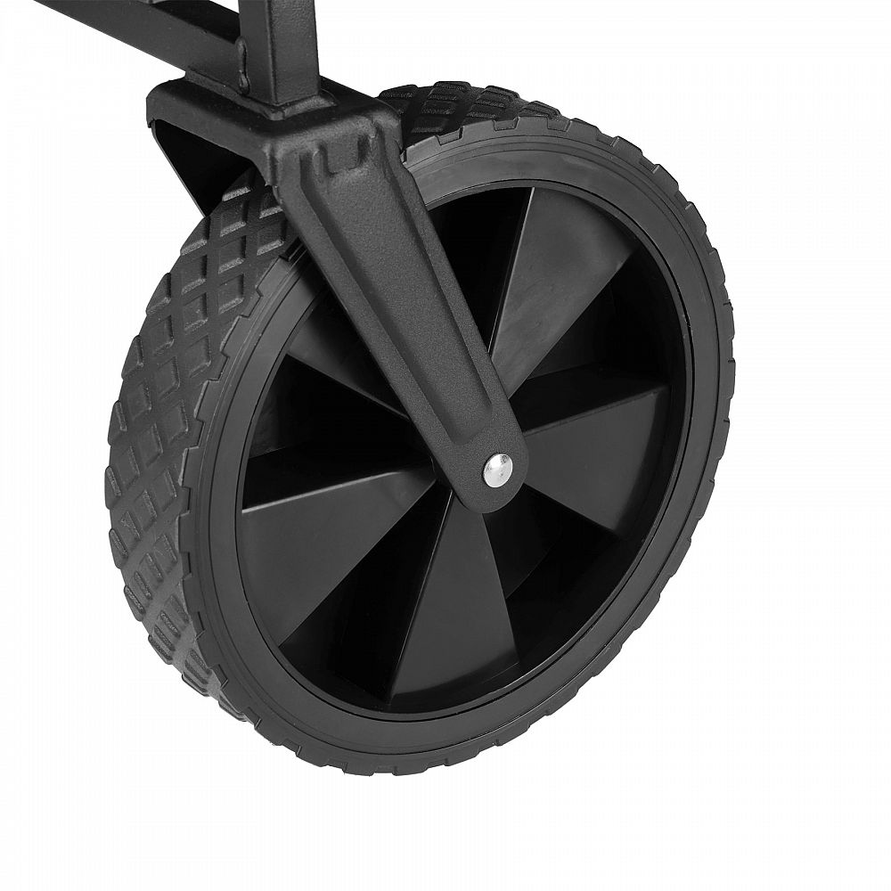 Kempingový vozík dobře funguje v různých terénních podmínkách - na písku, trávě, kamenech nebo městské dlažbě. Je vybaven robustními koly z PP a PVC o průměru 19 cm a šířce 4 cm, která zajišťují stabilitu a plynulou jízdu. Velký objem 150 litrů vám umožní převážet nákupy, turistické vybavení, zásoby nebo plážové hračky - aniž byste museli vše nosit v rukou nebo v batohu.