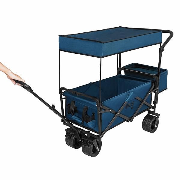 Vozík je navržen pro maximální pohodlí. Po složení zabírá minimum místa, takže ho snadno uskladníte, nebo například převezete v kufru auta. Po rozložení nabízí velký nákladní prostor o objemu až 120 litrů a ergonomickou, výškově nastavitelnou rukojeť pro snadné vedení. V zadní části vozíku je pak nastavitelné madlo, za které lze vozík tlačit, například pokud je plně naložen - uveze až 120 kilogramů. Přední kola jsou opatřena brzdami pro zajištění vozíku na místě. Součástí je i praktický košík na drobnosti a skládací stříška, kterou snadno připevníte, aby byl náklad chráněn před sluncem či slabým deštěm.