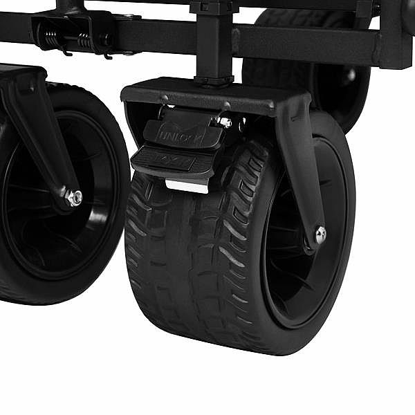 Model NC2605 je vybaven velkými, odolnými koly o průměru 18 cm a šířce 10 cm, vyrobenými ze směsi polypropylenu (PP) a PVC. Tato konstrukce zajišťuje plynulou jízdu i přes nerovný terén – v lese, na pláži nebo kamenité cestě. Vozík je stabilní a snadno ovladatelný za jakýchkoli podmínek.