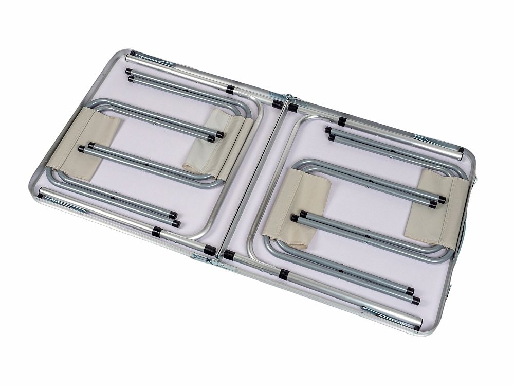 Materiál: hliník, MDF deska stolu, polyesterová tkanina