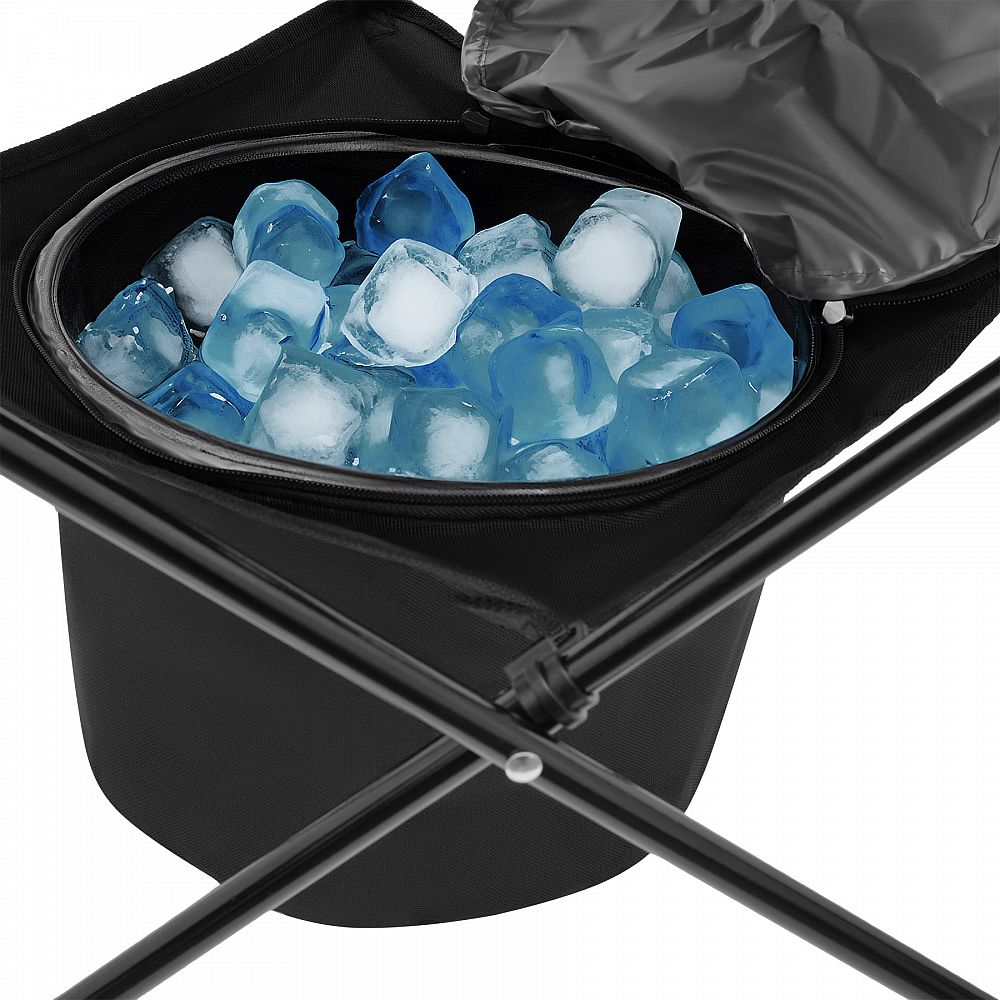 Pod odkládací plochou stolku se nachází uzavíratelný prostor s funkcí chladicí tašky – ideální pro uchovávání nápojů a občerstvení při správné teplotě i v horkých dnech. To je skvělá pomůcka pro delší pobyt daleko od ledničky. Navíc byla plocha stolku vybavena hned čtyřmi košíky na kelímky nebo lahve, což výrazně zvyšuje pohodlí při jídle a relaxaci.