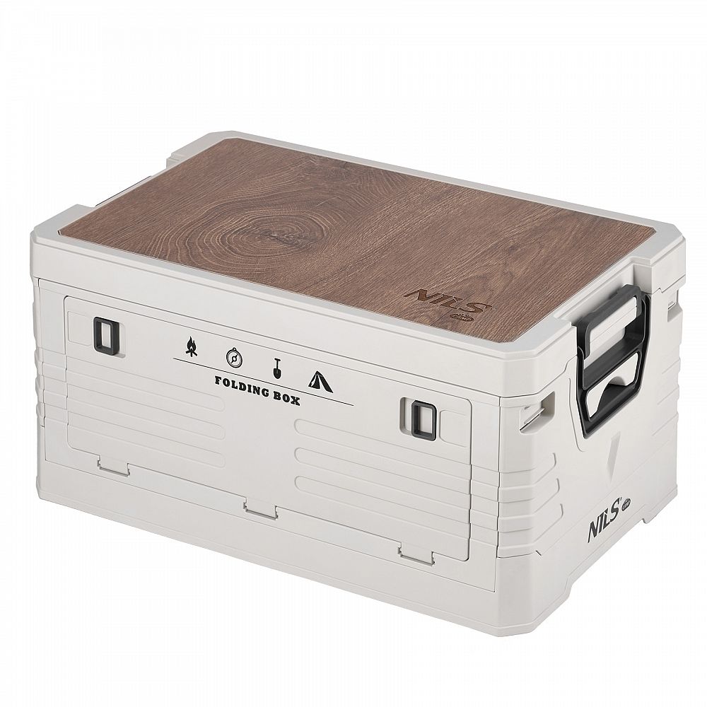 Popis: Skládací box NILS Camp NCB4002 2v1 s víkem a dřevěnou deskou 32L béžový