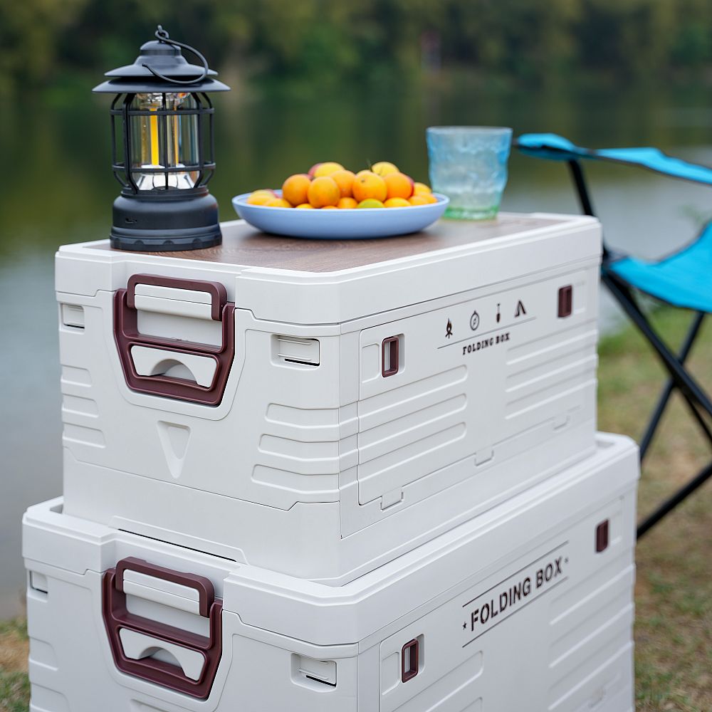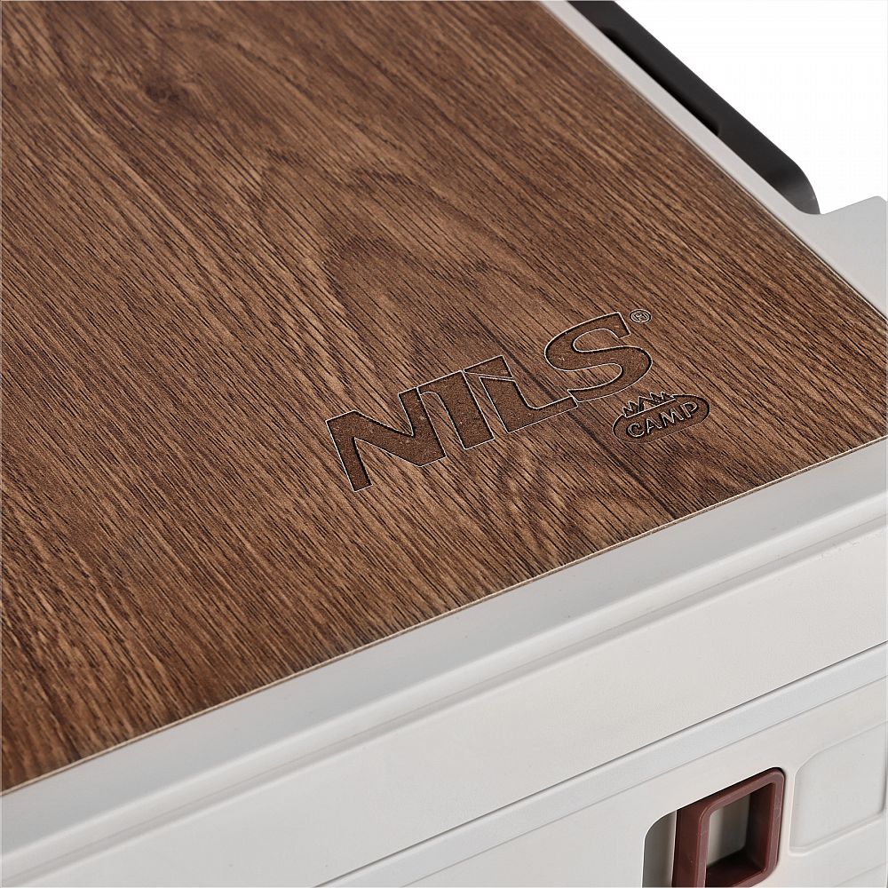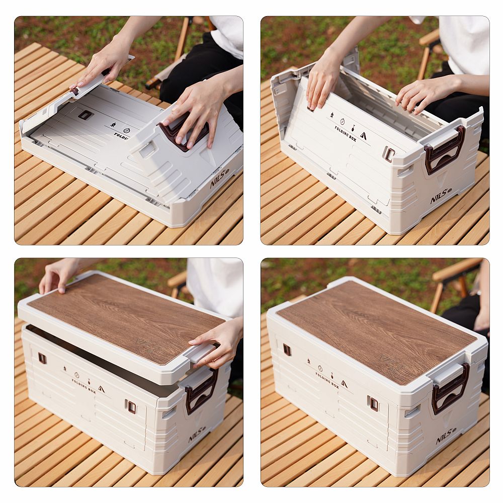 Skládací box NILS Camp NCB4002 2v1 s víkem a dřevěnou deskou 32L béžový
