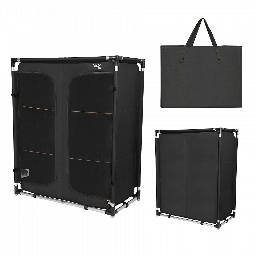 Chystáte se na stanování, na chatu, do karavanu, nebo plánujete delší pobyt v kempu s rodinou či přáteli? Turistická skříňka NILS Camp NC3034 je nezbytným prvkem vašeho vybavení, pokud vám záleží na pohodlí a dobré organizaci prostoru. Jedná se o lehkou, skládací konstrukci, která po rozložení zajišťuje pohodlí srovnatelné s domácí skříní a po složení zabírá minimální množství místa v zavazadle.
