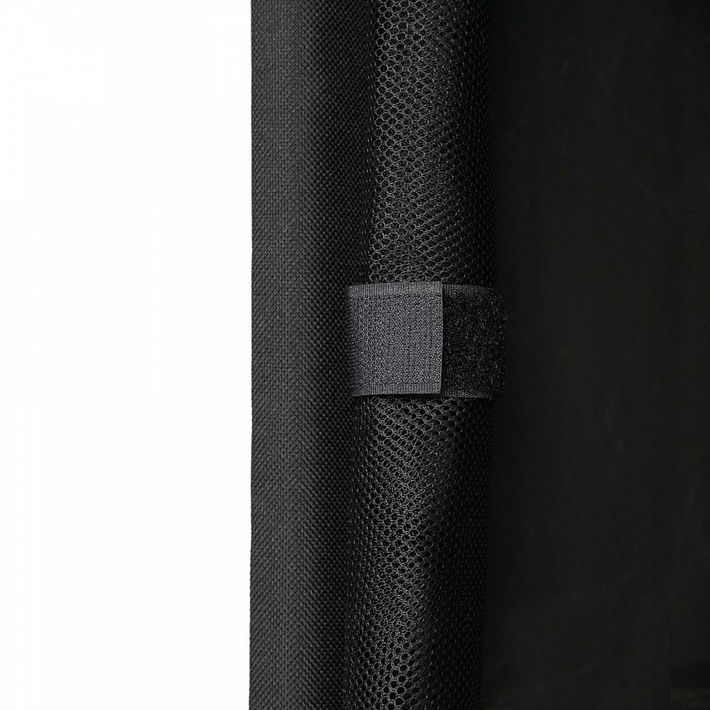 Přední část je opatřena dvěma panely z prodyšné síťoviny, které se zapínají na zipy. Toto řešení chrání obsah před hmyzem, zároveň zajišťuje dokonalou ventilaci – nemusíte se obávat nepříjemných pachů nebo vlhkosti.