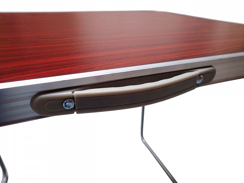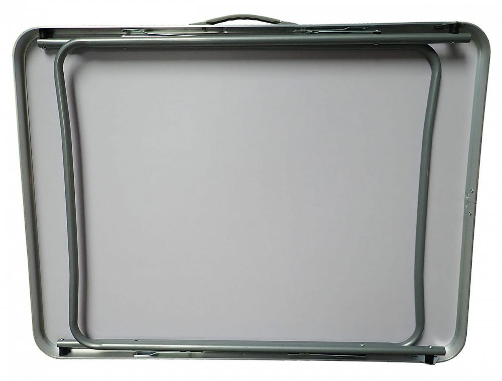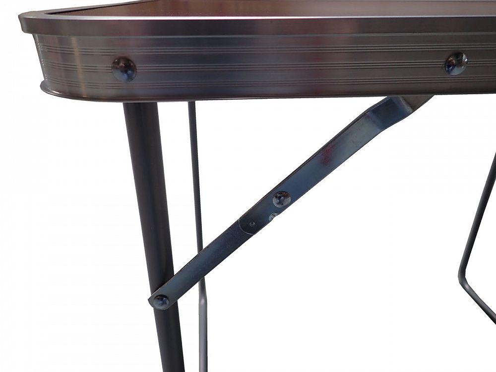 Skládací kempingový strolek 80 x 60 x 70 cm se dvěma sklápěcími nohami opatřenými páčkovými aretacemi po obou stranách stolu. Ocelová konstrukce a obvodový rám zajišťují pevnost, plastová omyvatelná deska se snadno udržuje v čistotě. Nosnost stolu je 20 kg,