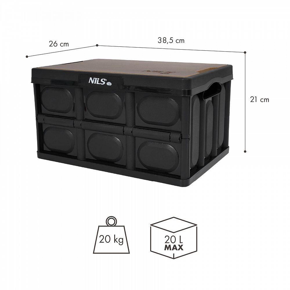 Popis: Skládací přepravka NILS Camp NCB4005 s dřevěným víkem 2v1 20L