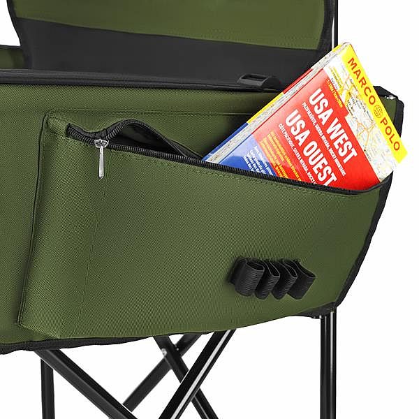 Vestavěné boční kapsy umožňují uložení drobných předmětů, jako jsou nápoje, turistické doplňky nebo občerstvení, které jsou tak vždy po ruce. Na zadní straně opěradla je natisknutá stupnice o délce 15 palců.