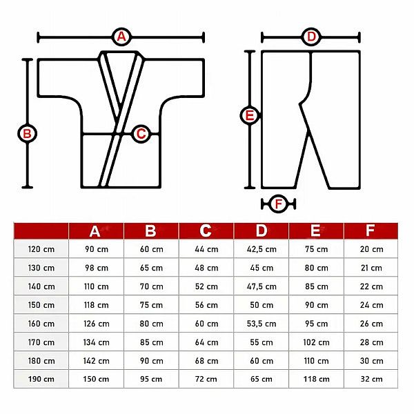 Pohodlný střih umožňuje volné provádění technik a široké kalhoty s klínem v rozkroku poskytují plnou volnost pohybu, zejména při kopech. Pro větší pohodlí jsou kalhoty lemovány gumou a nastavitelnou šňůrkou.