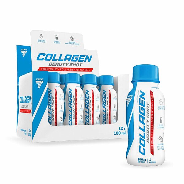 Trec Collagen Beauty Shot - hledáte přípravek, který pomůže se zdravím pokožky, její pružností a odolností proti natažení? Toto je jedna z nejlepších voleb, kterou můžete udělat. Hydrolyzovaný kolagen, kyselina hyaluronová a volná forma vitaminu C (ve formě kyseliny l-askorbové) poskytnou vašemu tělu potřebnou podporu. Paradoxně může působit i jako kloubní přípravek, a to díky širokému spektru působení jednotlivých účinných látek, které obsahuje.