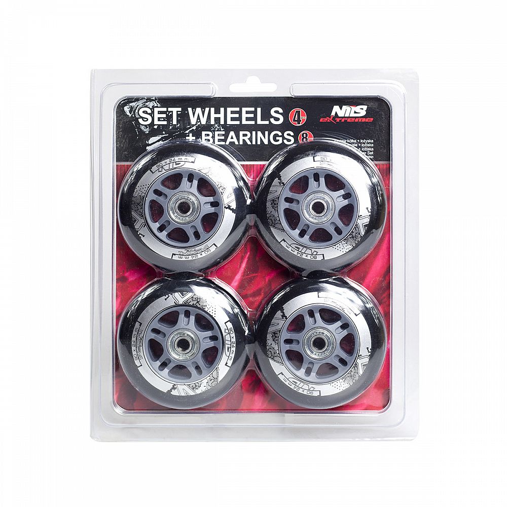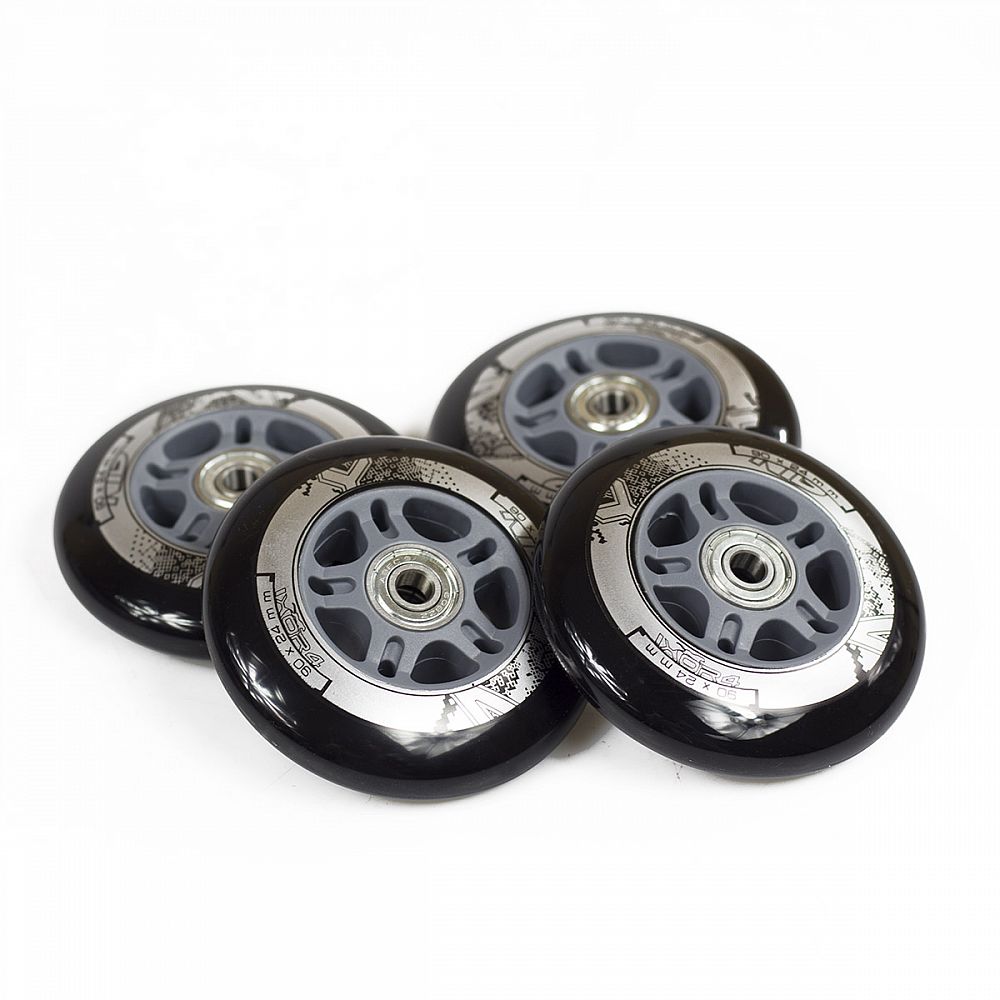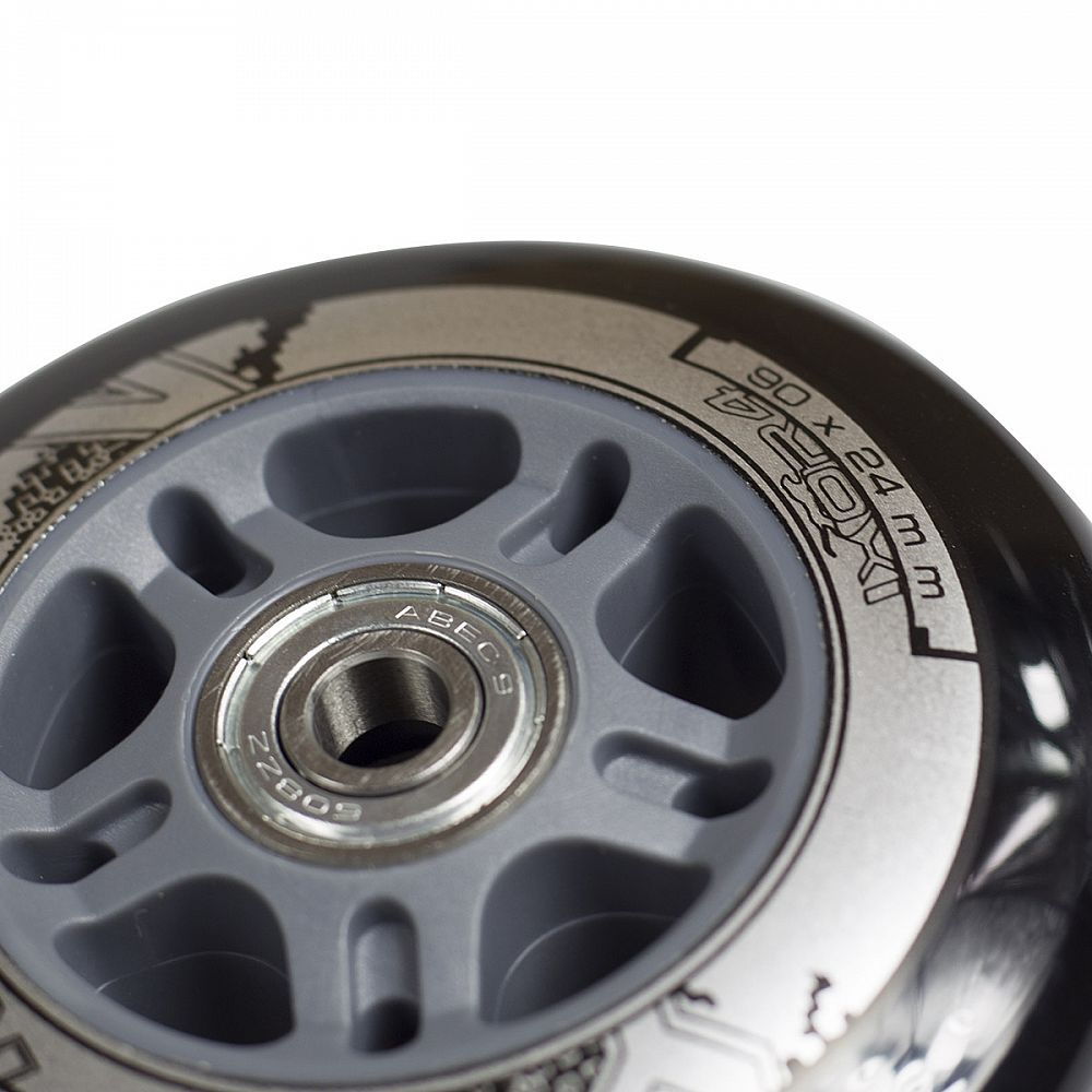 Náhradní sada koleček velikosti 90 x 24 mm černé barvy a tvrdostí 82 A s ložisky ABEC 9.