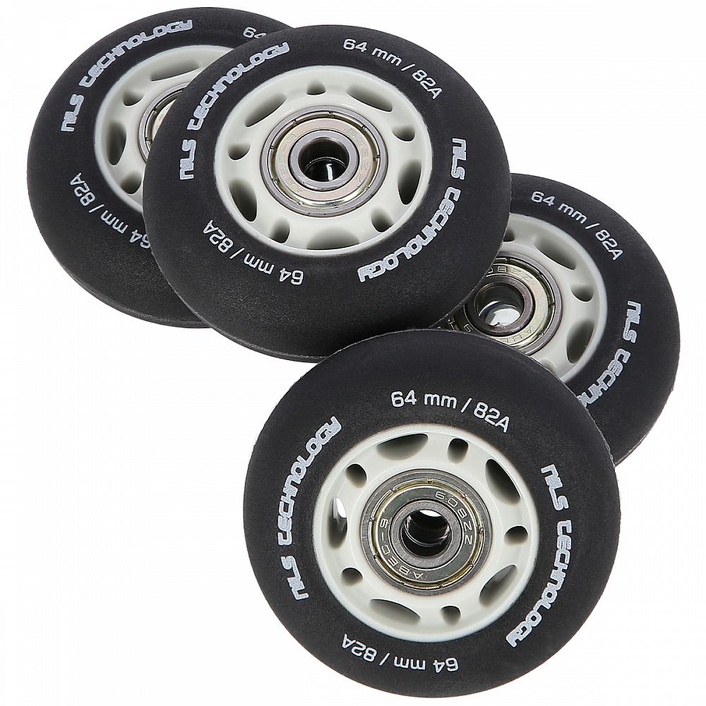 Popis: Matná kolečka NILS Extreme PU 64x24 82A s ložisky ABEC 9, černá, 4 ks
