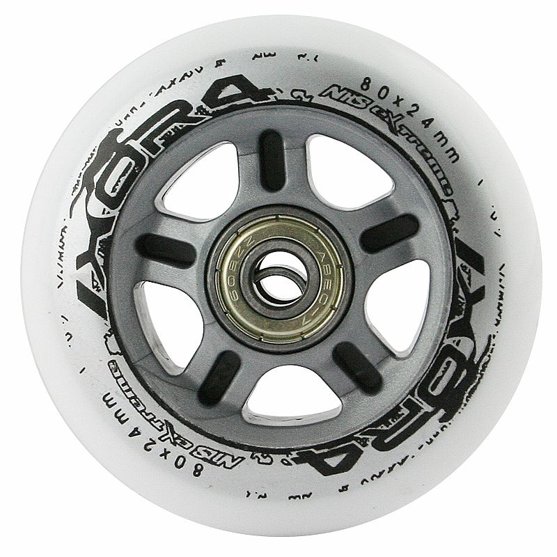 Popis: Sestava bílých PU koleček 80x24 + ložiska ABEC7 NILS EXTREME