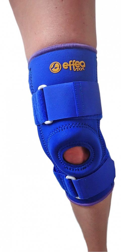 Neoprenová bandáž Effea – koleno, vel. S. Zpevňuje koleno při pohybových aktivitách, pomáhá udržovat tělesné teplo a prohřívat postiženou oblast, zároveň podporuje krevní oběh v postižené oblasti. Jednoduché upevnění a nastavení, odolná proti sklouznutí. Šetrná k pokožce. Pozor, nejedná se o žádný rehabilitační prostředek, pouze o pomůcku při určitých zdravotních potížích s danou částí těla.