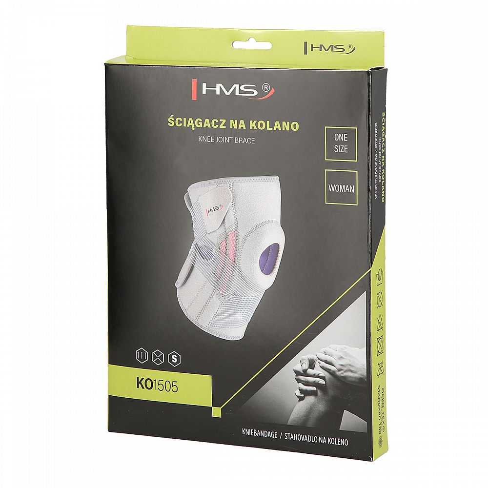 Bandáž na koleno HMS KO1505 najde uplatnění při muskuloskeletálních dysfunkcích v oblasti kolene, které vyžadují relativní imobilizaci. Zvyšuje stabilizaci kloubu, a proto může být užitečná i při bolestivých stavech. Výrobek je lehký, měkký a pohodlný a nezpůsobuje nepohodlí ani při celodenním nošení. Bandáž je vyrobena z vysoce kvalitních materiálů, které zaručují vysoký komfort používání. KO1505 má zapínání na suchý zip a přídavné gumičky pro stabilizaci kolenní čéšky. Její anatomická profilace se dokonale přizpůsobuje tvaru těla. Díky absenci dlah nebo výztuh lze bandáž používat při sportovních aktivitách.