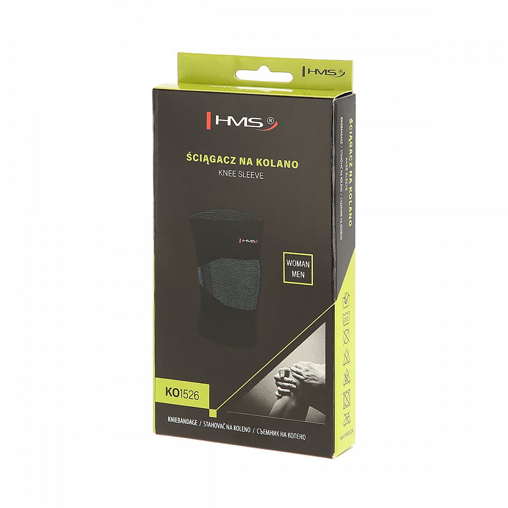 HMS KO1526 je bandáž, nebo také stahovadlo na koleno. Produkt se používá ke zpevnění kolene bez výrazného omezení jeho pohybu. KO1526 je vyroben z kombinace nylonu a elastanu, díky výslednému materiálu perfektně přilne k pokožce a také odvádí pot na svůj povrch.