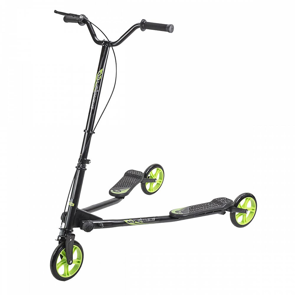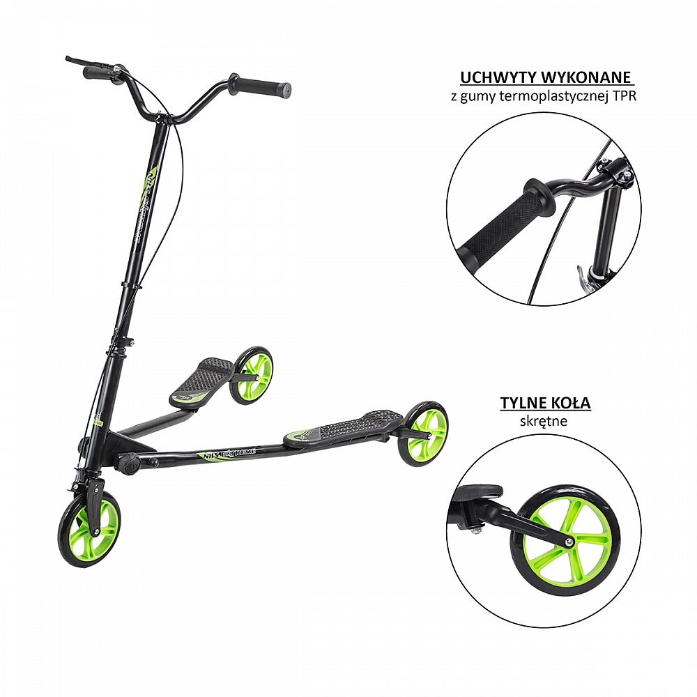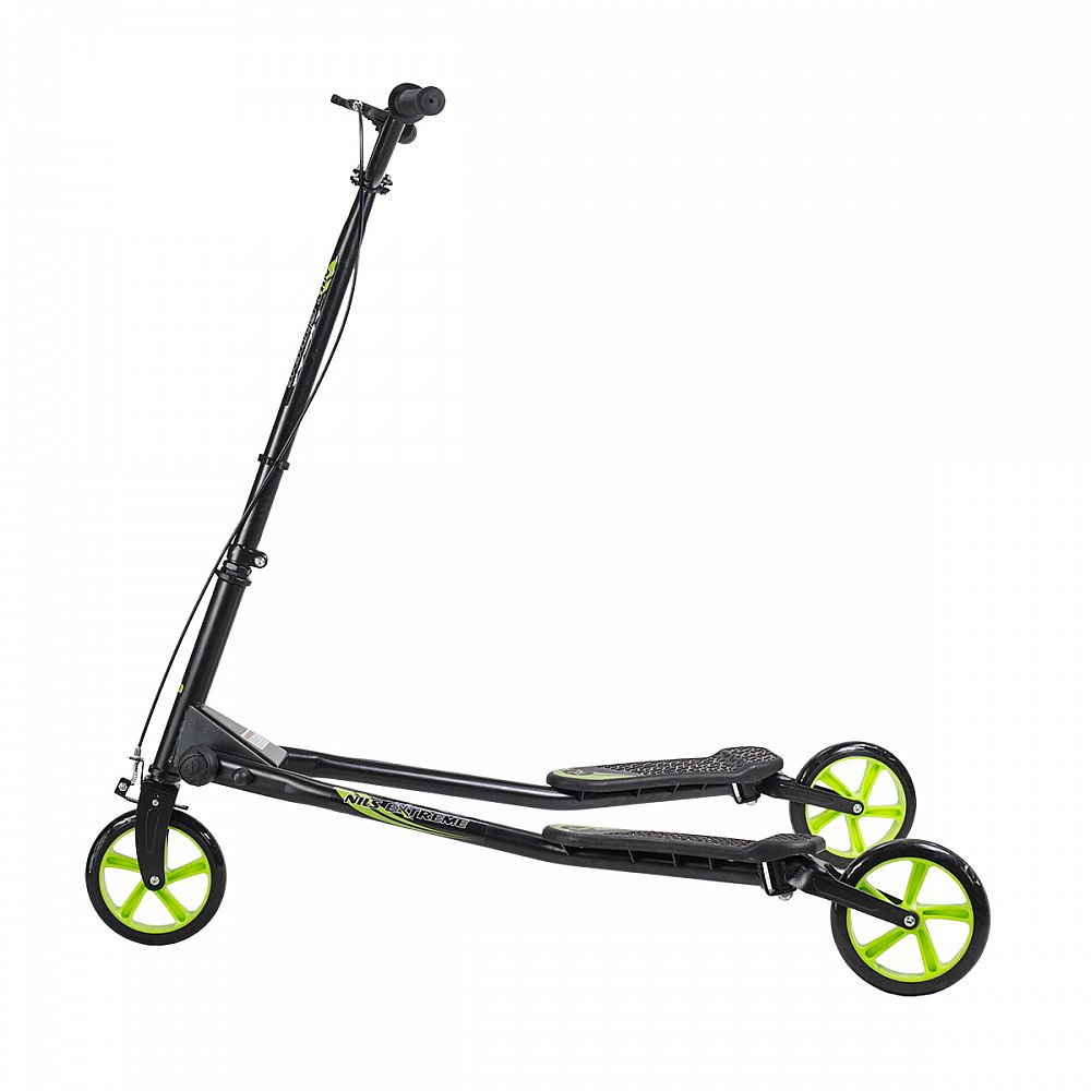 Koloběžka NILS EXTREME Fliker 180 je nový fenomén pro děti, tak i pro dospělé. Fliker je senzační koloběžka, kterou ženete dopředu rotačním pohybem boků. Jízda na tomto typu koloběžky je zábavná a dostane každého! Ovládání je navíc snadné a dokonale plynulé! Zkušení jezdci dokáží na Flikeru neskutečné triky a dosahovali rychlost až 20 km/h. Navíc, což je možná to nejdůležitější, při jízdě zapojujete všechny svaly těla a tudíž napomáhá zesílení a redukci tuku. Ergonomické rukojeti trojkoloběžky absorbují vibrace a dokonale padnou do ruky! Brzdový systém Grip Brake vám vždy umožní bezpečně zastavit. Bezpečností dorazy zabraňují převrácení koloběžky!