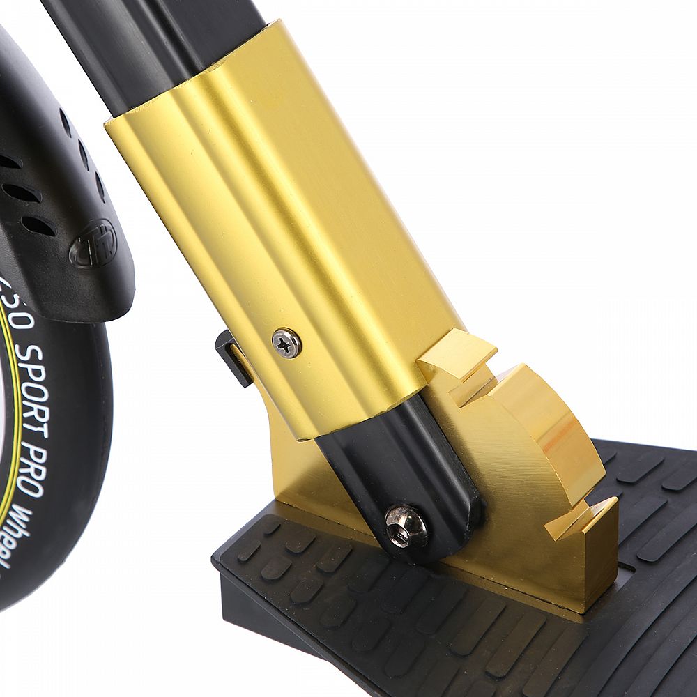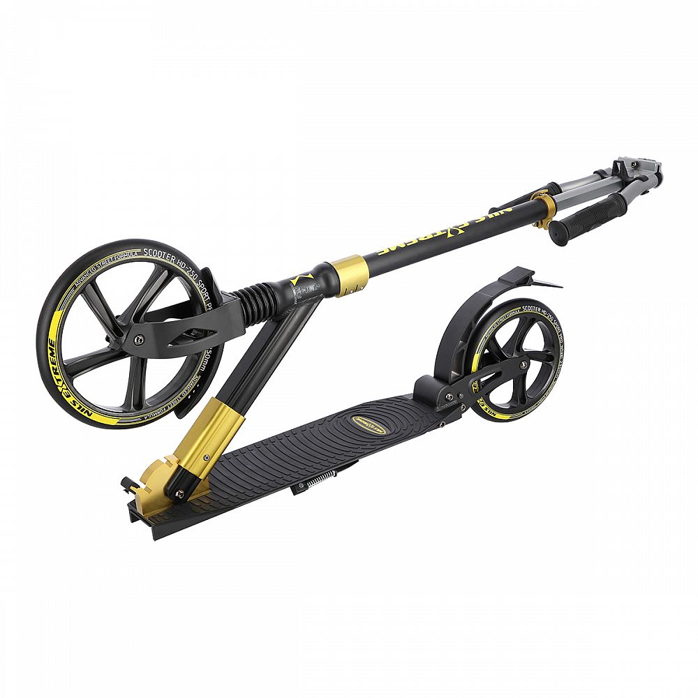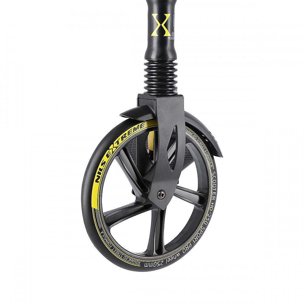 Systém odpružení obou kol zvyšuje jízdní komfort. Tlumiče pohlcují nárazy a jízda po nerovném asfaltu, nebo dlažebních kostkách je příjemnější a tižší. Robustní zadní blatník slouží jako nožní, přítlačná brzda. Široká řídítka jsou opatřena gumovými rukojeťmi, které zajišťují pevný a pohodlný úchop. 250 a 200 milimetrů velká kola jsou osazena ložisky ABEC 9. Tato kombinace zajišťuje rychlou, plynulou a bezpečnou jízdu. Blatník na předním kole a skládací stojánek jsou drobnostmi, které přizpívají k maximálnímu možnému komfortu z jízdy a k celkové radosti ze samotného použivání modelu MH255.