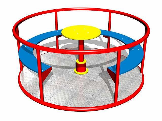 - Kolotoč na sezení (průměr 1,45 m) - celokovový s protiskluzovou podlahou, otočným středem a sedáky z HDPE