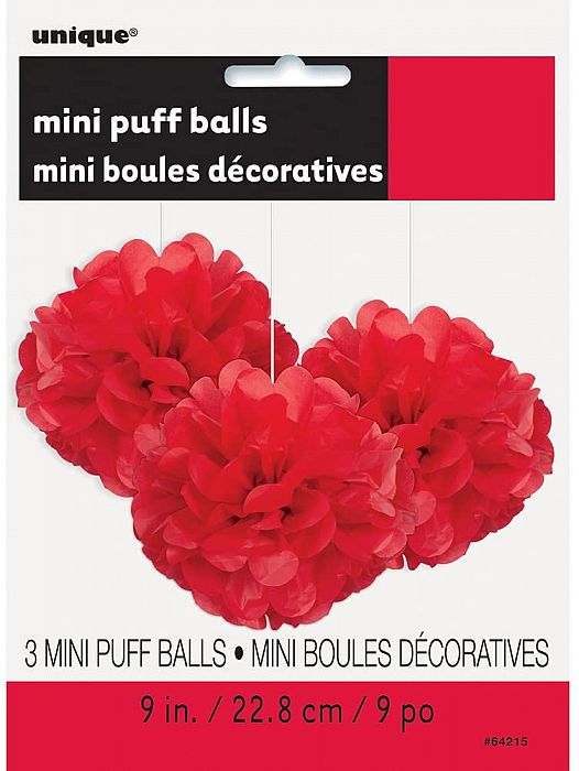 Dekorační závěsné pom pomy v červené barvě. Balení obsahuje 3ks pom pomů a jejich velikost je 23cm v průměru.