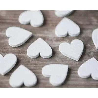 Popis: Dřevěné konfety srdce bílé 12 ks