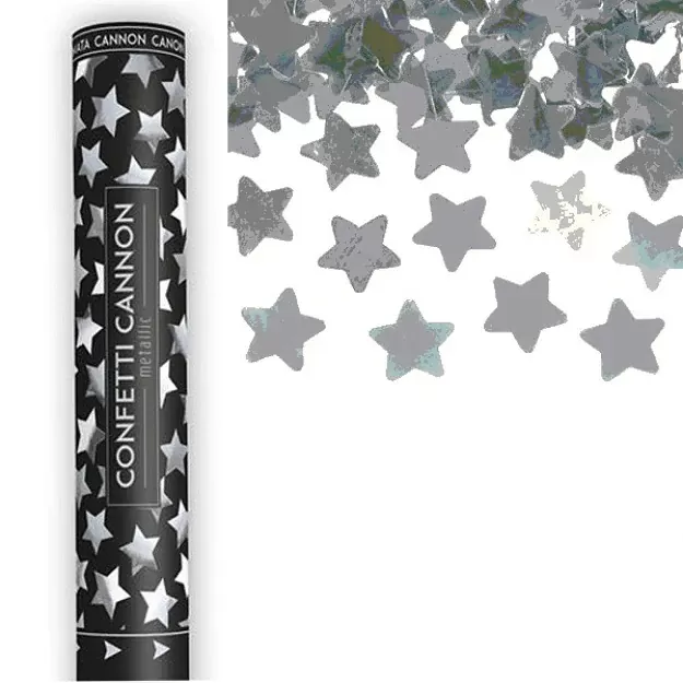 Vystřelovací konfety stříbrné hvězdy 60 cm