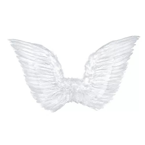 Andělská křídla jsou vyrobena z bílého prachového peří, čistě bílá, bez třpytek a netřepí se, vypadají tedy velmi reálně. Jednoduše se křídla nasadí na ramena pomocí přišité gumy. Mají větší rozměry, jsou tedy vhodné spíše pro dospělé.