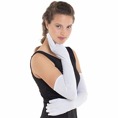 Bílé dlouhé rukavičky, vhodný doplněk ke kostýmu anděla či Mikuláše nebo party ze 20 let. Rukavice jsou vyrobeny z kvalitního materiálu zaručujícího dlouhou životnost.