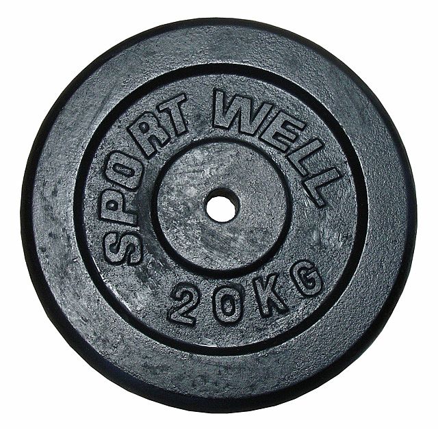 Závaží k činkám 1 x 20 kg, s otvorem na osu o průměru 25mm. Průměr celého kotouče je 33,5 cm.