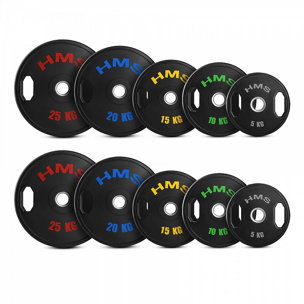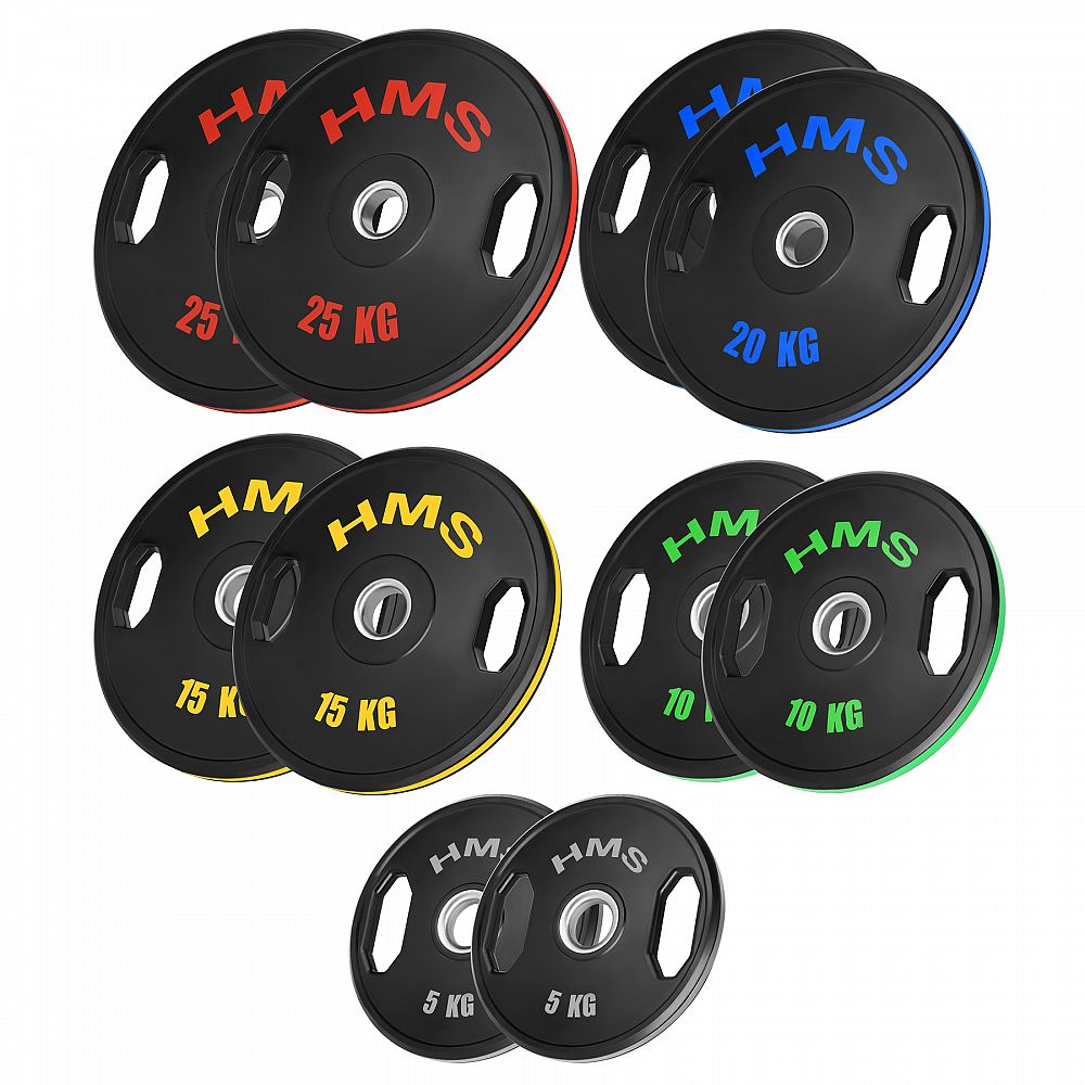 Sada olympijských kotoučů TOG od společnosti HMS Fitness je ideálním řešením pro ty, kteří hledají komplexní vybavení pro silový trénink. Sada obsahuje všechny dostupné zátěže: 2 x 5 kg, 2 x 10 kg, 2 x 15 kg, 2 x 20 kg a 2 x 25 kg, celkem tedy 150 kg zátěže. Kotouče TOG se vyznačují odolností, funkčností a moderním designem a splňují očekávání i těch nejnáročnějších uživatelů.