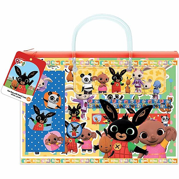 Zdokonalte si svou oslavu v motivu Králíčka Bing s touto zábavnou taštičkou. Balení obsahuje: kovový penál, 6 listů k malování, 2 listy se samolepkami, 2 tužky, blok, pravítko, ořezávátko a gumu, to vše v uzavíratelné taštičce s potiskem.