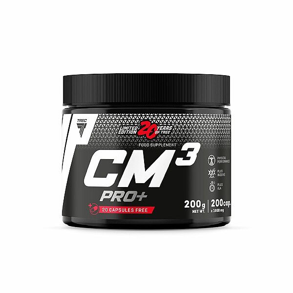 Trec Nutrition CM3 PRO+ obsahuje trikreatin malát s inosinem a kyselinou alfa-lipoovou.