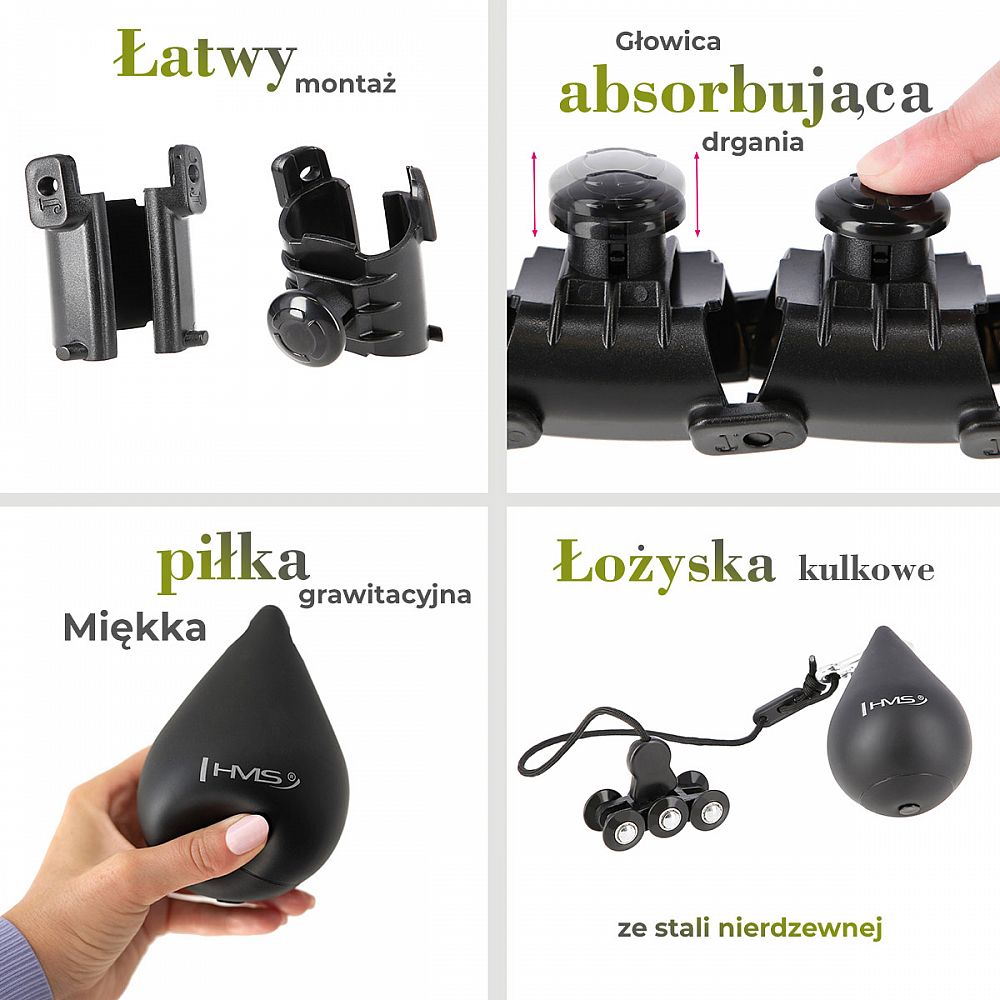 HMS HHW12 je hula hop obruč s nastavitelnou délkou, masážními výstupky a rotujícím závažím.