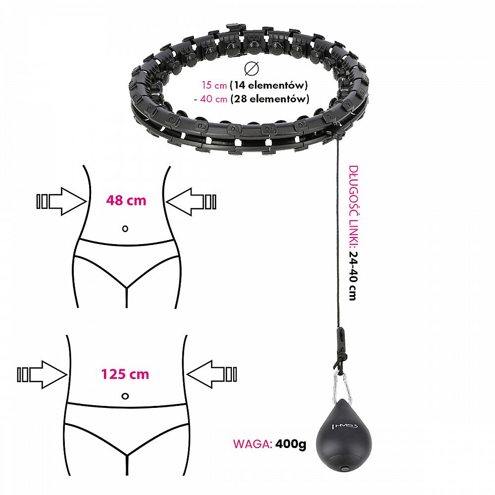 Popis: Masážní hula hoop HMS HHW12 plus size se závažím černá