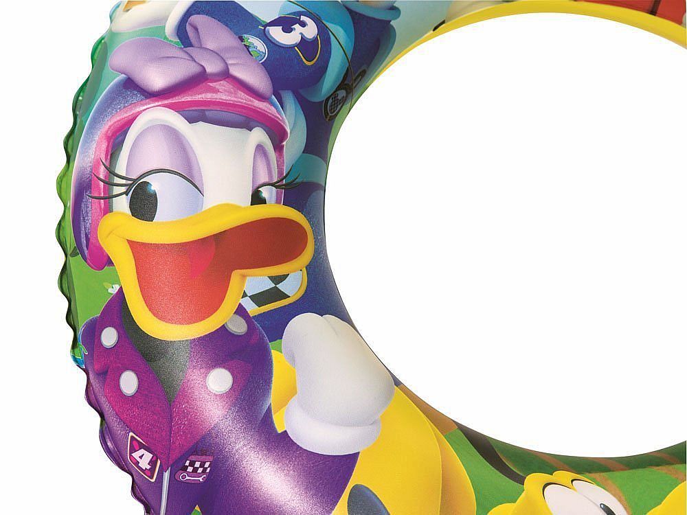 Nafukovací kruh potištěný Mickey Mouse, 56 cm, doporučeno pro děti ve věku 3 – 6 let. Licenční potisk s oblíbenými postavičkami serálů.