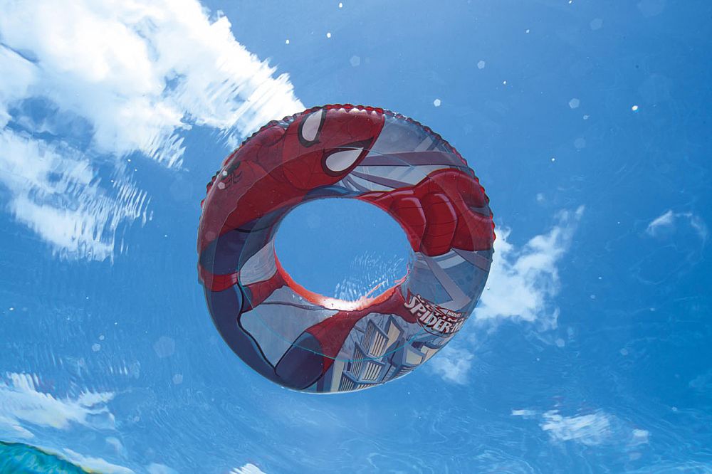 Nafukovací kruh potištěný Spiderman, 56 cm, 3 – 6 let. Licenční potisk s oblíbenými postavičkami serálů.