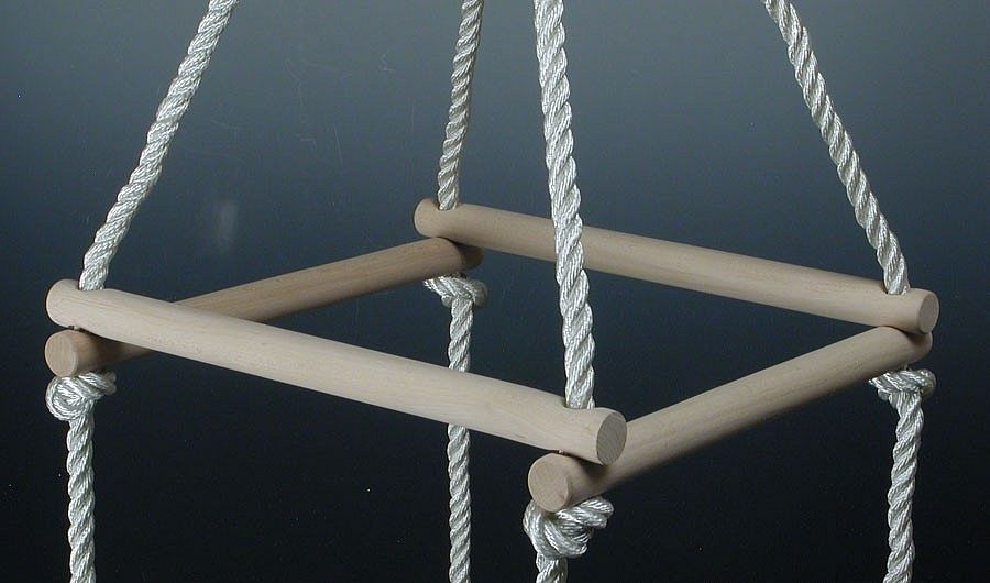 Šplhací žebřík pyramida - tento krátký šplhací žebřík je určen převážně pro venkovní použití na dětská hřiště a sportoviště. Lze ho ale použít i v interiéru, např. do dětského pokoje. Šplhací žebřík má dřevěné stoupačky. Na konci je opatřen jedním kovovým kroužkem, o průměru 6cm, na upevnění.