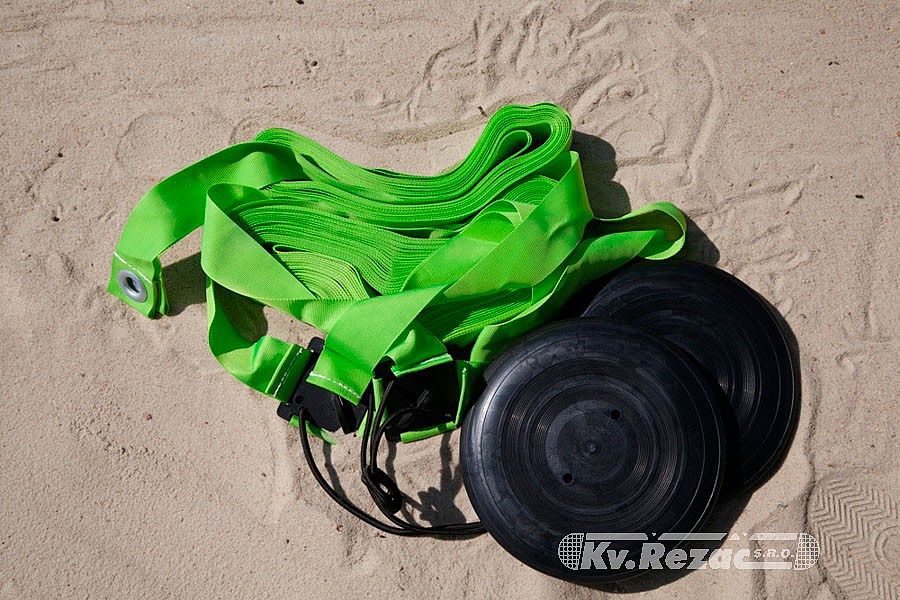 Lajny na vytyčení hřiště, v rozích je ukotvení a vypínací přezka.