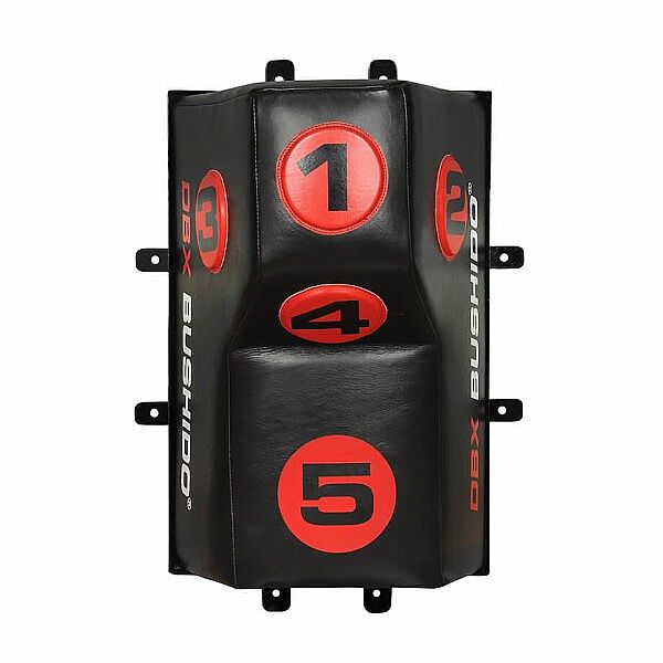 Úderový terč DBX BUSHIDO DBX-W-10B s kónickým výstupkem je určený pro trénink háků a úderů lokty a koleny. Optimální rozměry terče zajišťují pohodlný trénink a odolný materiál je zárukou dlouhé trvanlivosti i při velice intenzivním tréninku. Tréninkový terč je ideálním doplňkem ke klasickému boxovacímu pytli. Model DBX-W-10B navíc disponuje 5-ti terči označenými čísly, které se využívají během tréninku s trenérem, který cvičenci zadává postupně body, do kterých má udeřit.
