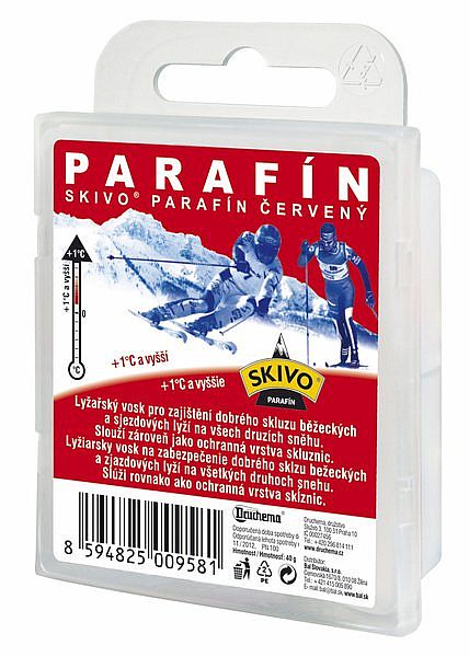 Lyžařský vosk SKIVO PA červený: Lyžařský vosk Skivo parafín červený - zajišťuje dobrý skluz běžeckých a sjezdových lyží či snowboardů na všech druzích sněhu při různých teplotách.Slouží jako podkladový vosk pro základní údržbu a konzervaci skluznice.