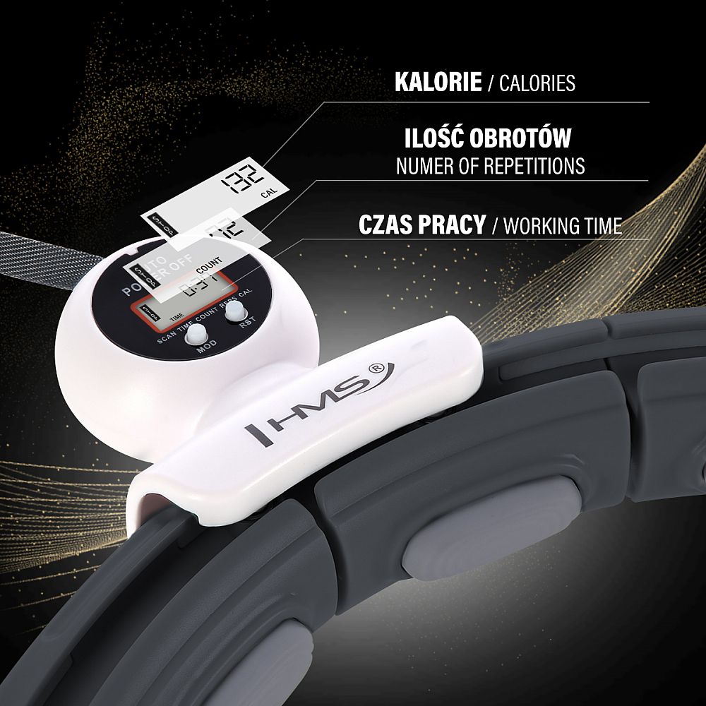 HMS HHM15 je hula hoop obruč s nastavitelným obvodem, masážními magnetickými výstupky, rotujícím závažím a počítadlem.