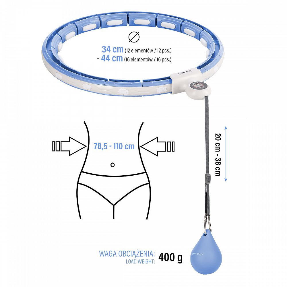Popis: Masážní hula hoop HMS HHM15 se závažím, magnety a počítadlem modrá