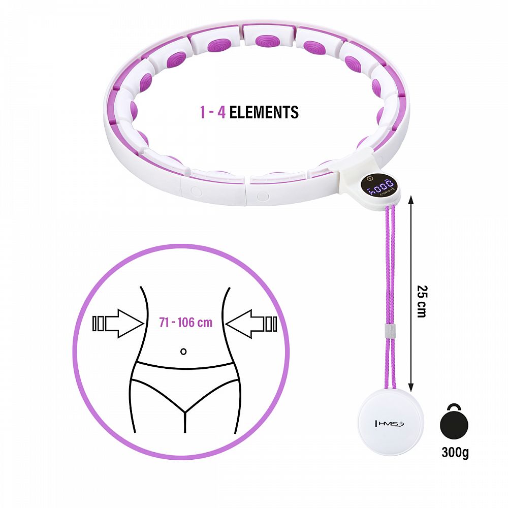 Popis: Masážní hula hoop HMS HHM17 se závažím, magnety a počítadlem bílá/fialová