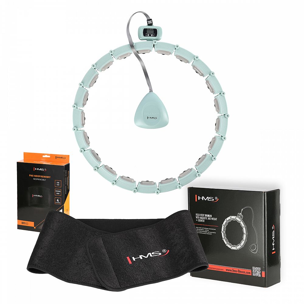 Sada masážní hula hoop HMS HHM14 se závažím a počítadlem a zeštíhlujícího pásu BR163 zelená