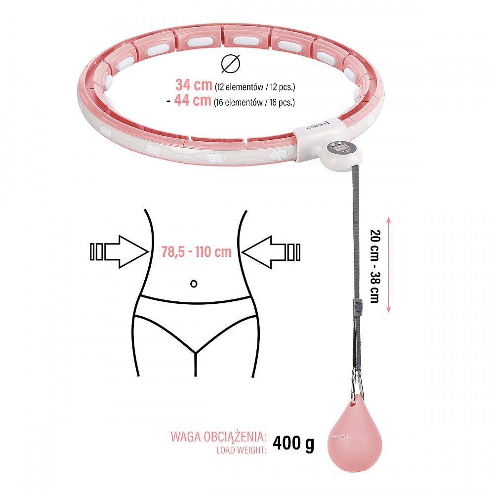 Popis: Sada masážní hula hoop HMS HHM15 růžová se závažím, magnety a počítadlem a zeštíhlujícího pásu BR163 PLUS SIZE